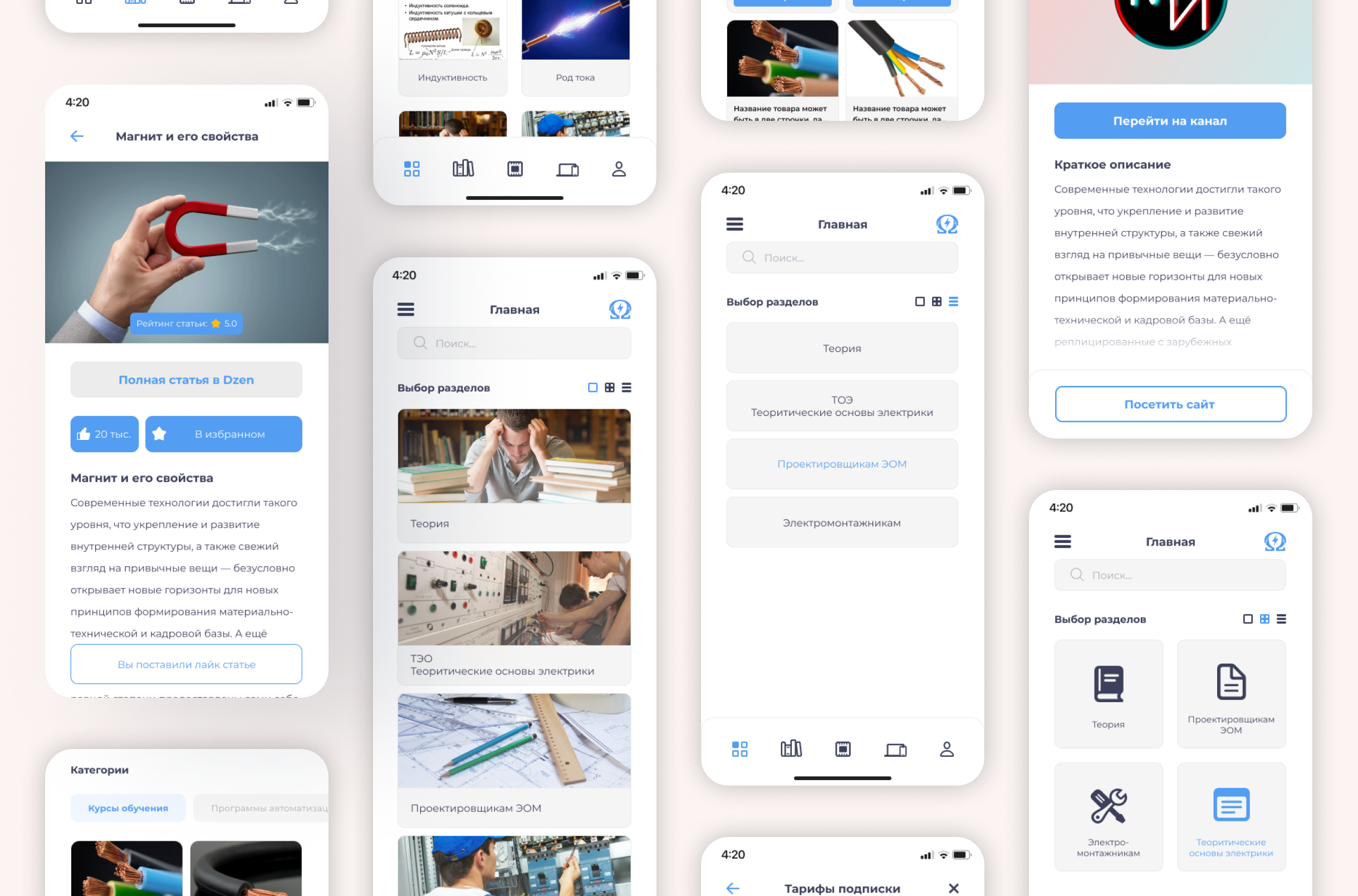 Разработка приложений для мобильных устройств (iOS, Android) с использованием различных технологий и платформ.